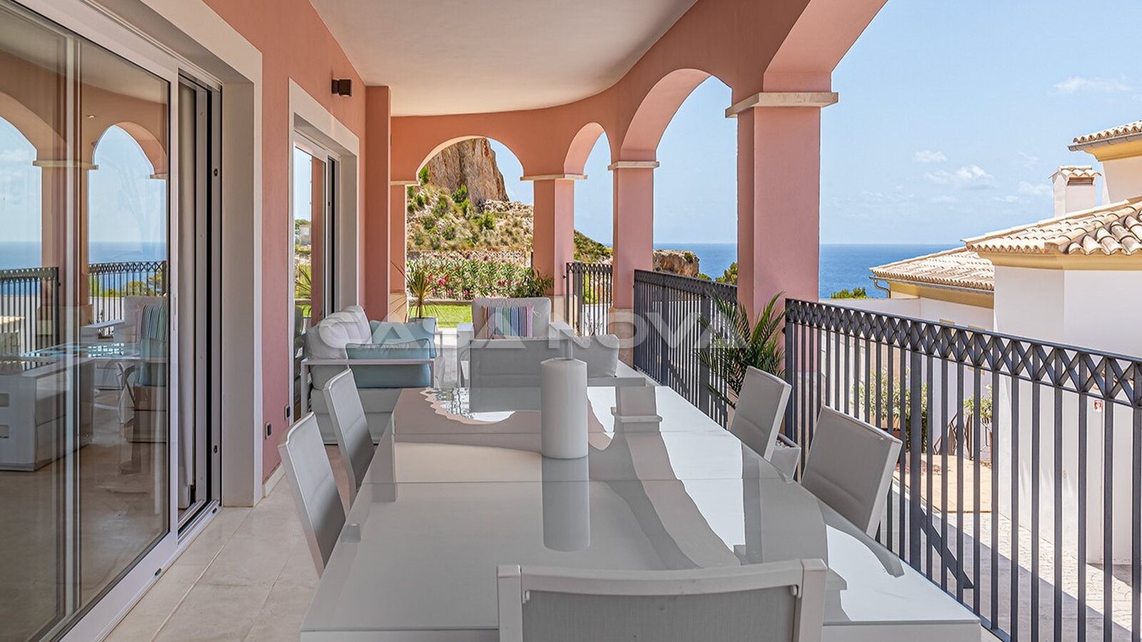 Die Immobilie auf Mallorca verfügt über eine luxuriöse Innenausstattung, eine große Sonnenterrasse und einen traumhaften Meerblick. Die 160 m² große Wohnfläche verteilt sich auf drei Schlafzimmer, drei Badezimmer, einen Wohn- und Essbereich mit offener, komplett eingerichteter Küche sowie einen direkten Zugang zur 44 m² großen Terrasse und zum 50 m² großen Garten. Zu den hochwertigen Ausstattungsmerkmalen gehören: Marmorböden innen und außen, Fußbodenheizung, Klimaanlage (w/k), Intelligence-Home-System sowie Einbauschränke. Das Apartment verfügt außerdem über einen Garagenstellplatz und einen Abstellraum. Zur Anlage gehört ein Gemeinschaftspool mit spektakulärem Meerblick.