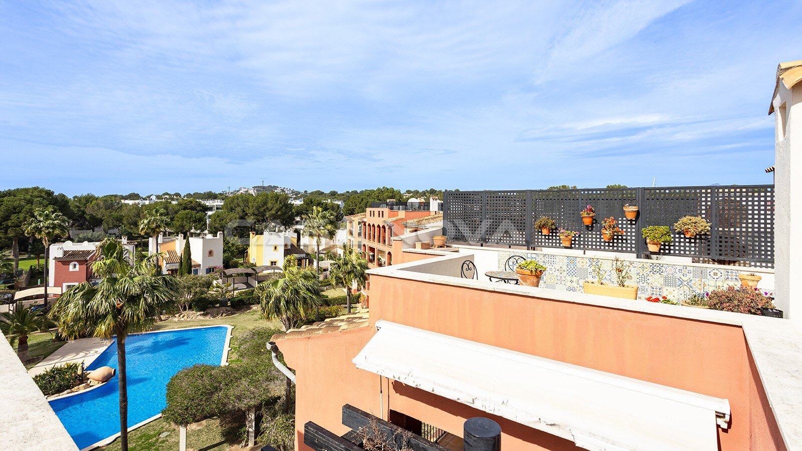 Immobilien - Mallorca: Traumhaftes Penthouse in einer privilegierten Wohnanlage mit 3 Gemeinschaftspools und Garten in Santa Ponsa, einer sehr begehrten Gegend im Südwesten der Insel.