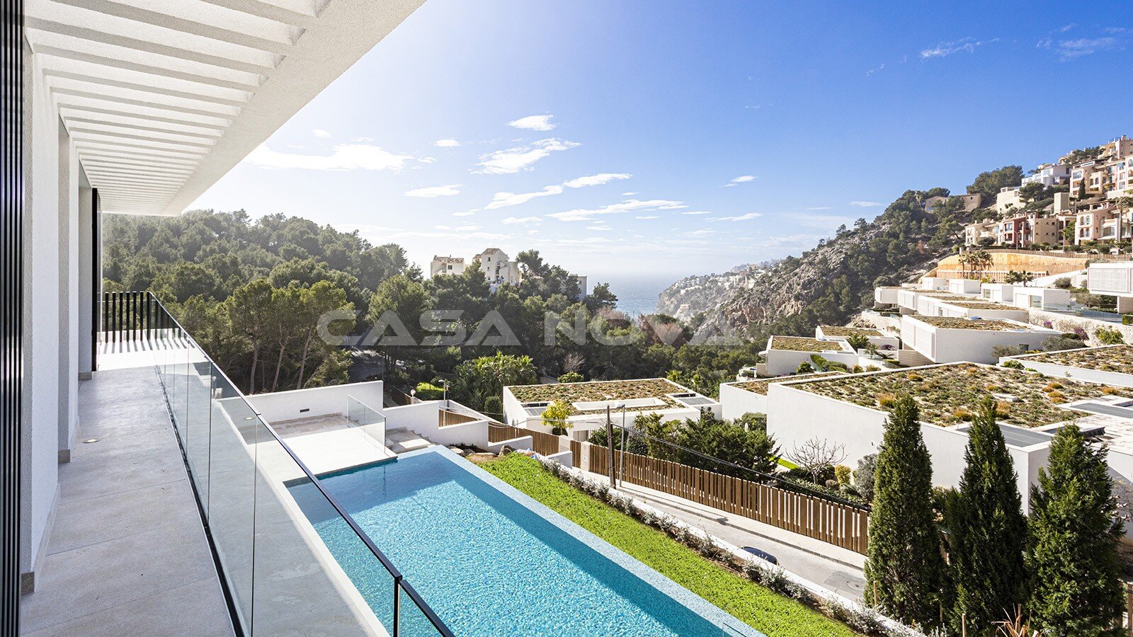 Luxusimmobilien Mallorca: Willkommen in dieser spektatkulären Neubauvilla mit wunderschönem Meerblick in Cala Llamp / Andratx , im Südwesten der Insel.