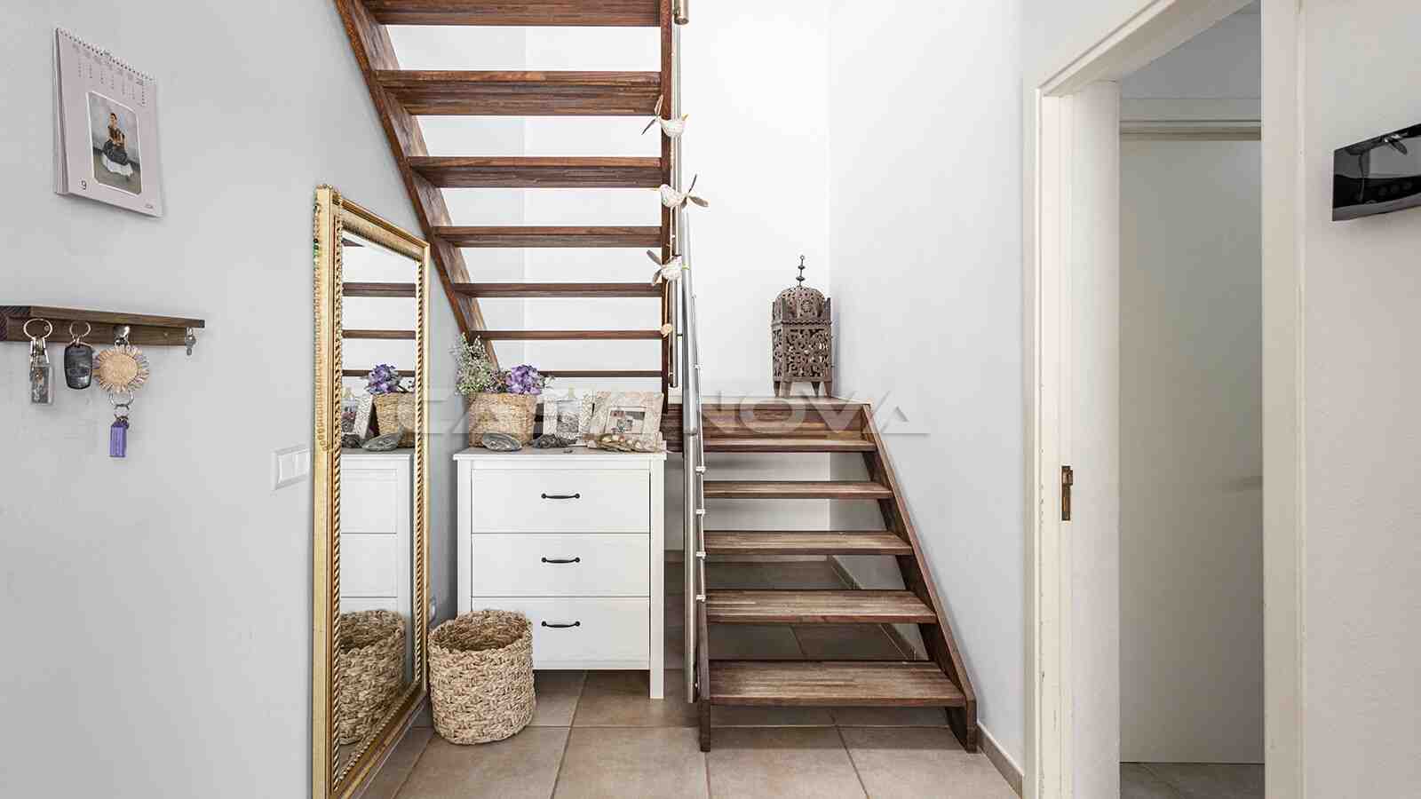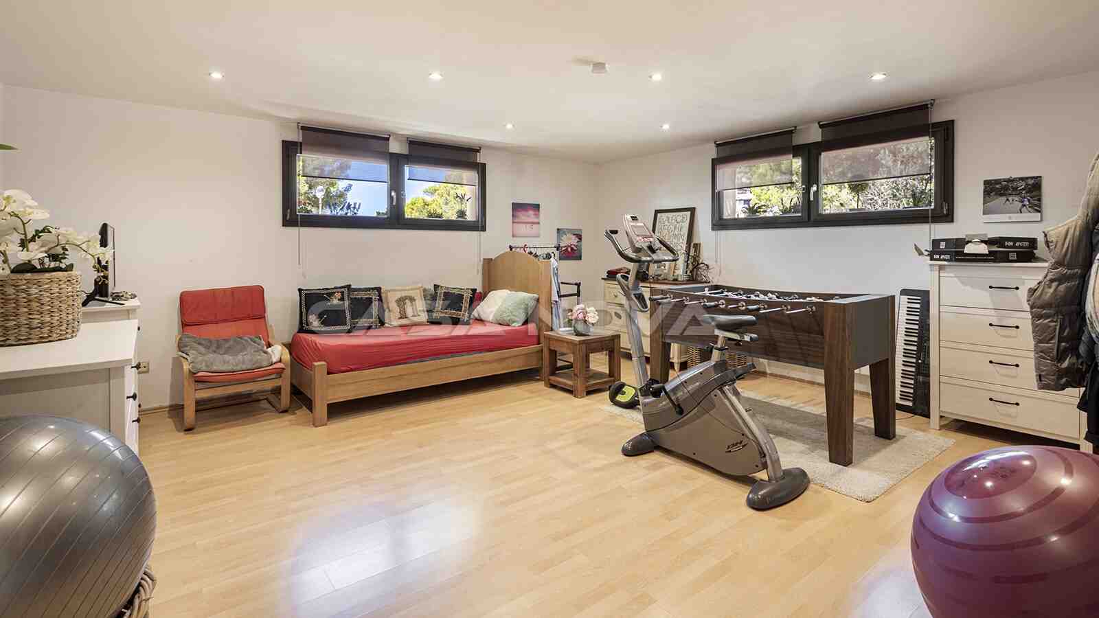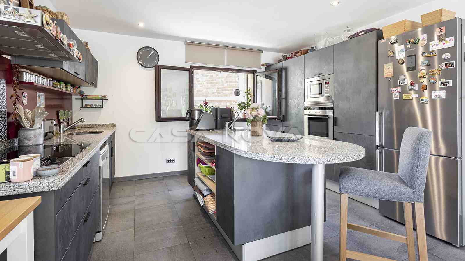 Die großzügige bebaute Fläche von ca. 351 m² erstreckt sich über zwei Wohnebenen, wodurch ein durchdachtes Raumkonzept mit klarer Trennung von Wohn- und Schlafbereichen entsteht und gleichzeitig viel Platz für individuelle Gestaltung geboten wird. Die obere Wohnebene umfasst die Hauptsuite mit begehbarem Kleiderschrank und einem komfortablen Bad en- suite sowie einem zusätzlichen, separaten Ankleidezimmer. Zudem befinden sich auf dieser Etage ein Gäste-WC, die moderne Küche, der Essbereich, das großzügige Wohnzimmer und eine Terrasse mit Teilmeerblick. Die untere Wohnebene bietet zwei weitere Schlafzimmer, ein Badezimmer, eine großzügige Multifunktionsfläche, die sich ideal als Spielzimmer oder Gästebereich eignet, sowie eine praktische Waschküche und einen Garagenbereich mit direktem Zugang zum Haus. Für ganzjährig angenehme Temperaturen in den Räumlichkeiten sorgen eine moderne Klimaanlage sowie eine effiziente Zentralheizung mit Aerothermie-Technologie. Die Immobilie ist an das öffentliche Stromnetz angeschlossen, wobei ein Teil des häuslichen Energiebedarfs nachhaltig durch eine auf dem Dach installierte Solaranlage gedeckt wird. Parkmöglichkeiten stehen Ihnen in Form von PKW-Stellplätzen sowie Garagenstellplätzen zur Verfügung. Eine Ladestation für Ihr E-Auto ist ebenfalls vorhanden und bietet Ihnen zusätzlichen Komfort auf dem eigenen Grundstück. Das Objekt ist von einem großzügigen Garten umgeben, in dem die Eigentümer derzeit ein außergewöhnliches Landschaftsbauprojekt fertigstellen, das den natürlichen Charme der Umgebung unterstreicht. Ein eleganter 25 m² großer Swimmingpool mit einem modernen Salzwasserfiltersystem rundet dieses bemerkenswerte Haus perfekt ab.
