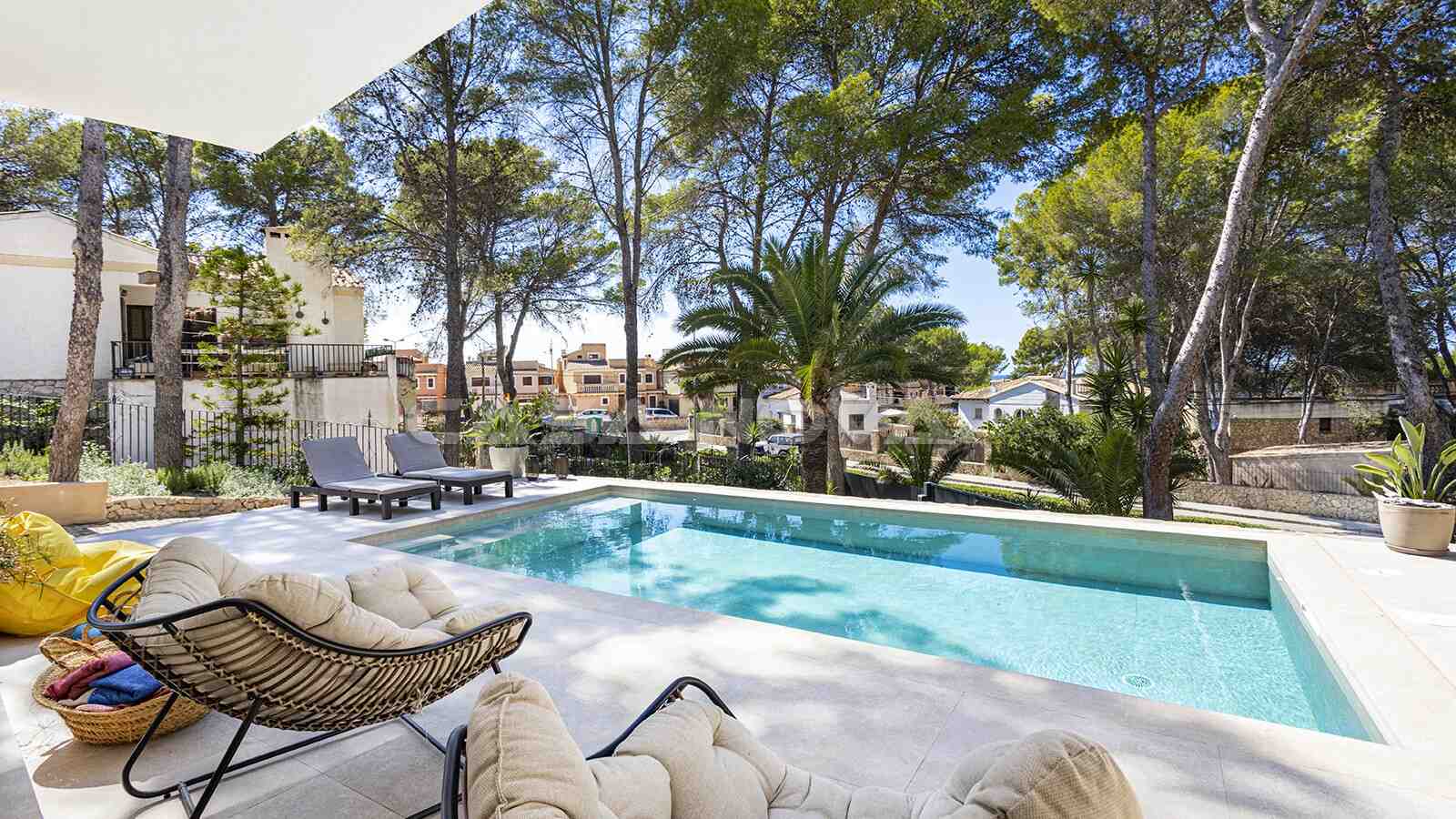 Costa de la Calma – wie der Name schon sagt, ein Ort der Ruhe und Erholung. Dieser charmante Küstenort im Südwesten Mallorcas liegt zwischen Santa Ponsa und Peguera und zeichnet sich durch seine entspannte Atmosphäre, wunderschöne Natur und herrliche Ausblicke auf das Meer aus. Wenn Sie auf der Suche nach einem entzückenden, gepflegten Familienhaus sind und in einer sicheren, ruhigen und familienfreundlichen Nachbarschaft leben möchten, dann empfehlen wir Ihnen eine Besichtigung.