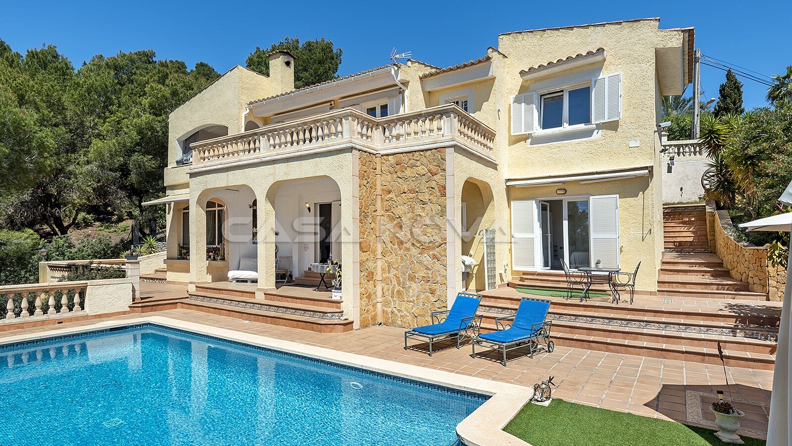Das 1.025 m² große Grundstück garantiert exklusive Privatsphäre und viel Raum zum Entspannen. Die großzügige Wohnfläche von 225 m² bietet ausreichend Platz für eine große Familie oder Gäste. Die Villa bietet insgesamt 5 Schlafzimmer, 4 stilvolle Bäder, 3 davon en suite.Für ganzjährig angenehme Temperaturen in den Räumlichkeiten sorgen eine Klimaanlage (w/k) eine Gaszentralheizung und ein offener Kamin, welcher zudem noch als stilvolles Designelement dient. Stauraum ist dank eines Abstellraums, Hauswirtschaftsraum, Einbauschränken und einem 20m2 Keller reichlich vorhanden. Besonders hervorzuheben ist der einladende 45 m² große Pool, der an heißen Sommertagen für angenehme Abkühlung sorgt und ideale Bedingungen für entspannte Stunden im Freien bietet. Auch für Ihre Fahrzeuge ist ausreichend Platz vorhanden: Im überdachten Carport finden 2 Autos Platz, weitere 3 Fahrzeuge können bequem auf der Freifläche geparkt werden. Diese außergewöhnliche Immobilie vereint Ruhe, Natur und Lifestyle in einer der begehrtesten Regionen Mallorcas.