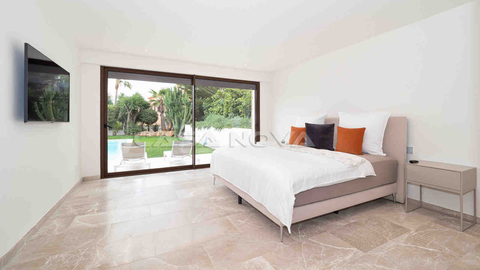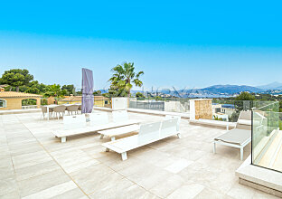Diese Immobilie liegt auf einem ca. 1003 m2 großen, flachen Gartengrundstück und bietet eine Wohnfläche von ca. 510 m2. Die Villa verteilt sich über 2 Etagen und verfügt über 6 Schlafzimmer, wobei eines davon aktuell als Büroraum verwendet wird, 5 Badezimmer, 4 davon en Suite, eine Ankleide, eine vollausgestattete Luxusküche der Firma LEICHT, diverse Abstellräume, ein Hauswirtschaftsraum und ein Gäste WC. Dank der bodentiefen Fenster und hohen Decken besticht die Immobilie durch exklusiv ausgewähltes Interieur. Das Highlight ist die 180 Grad Panorama- Dachterrasse mit Meerblick und Sommerküche, welche zum Essen in geselliger Runde einlädt. Weitere Ausstattungsmerkmale sind: Fußbodenheizung über Wärmepumpe, Klimaanlage warm/ kalt, doppelverglaste Fenster, elektrische Rollläden, Einbauschränke, Gas Kamin, Natursteinboden und Natursteinelemente. Nicht zu vergessen ist der atemberaubende Garten mit Salzwasser Swimmingpool und Sonnenterrasse. Die Garage mit zwei PKW- Stellplätzen und elektrischem Tor rundet das Immobilienangebot ab.