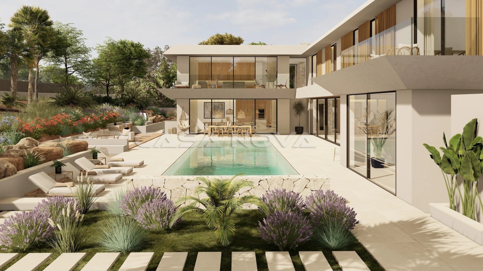 Willkommen zu diesem exklusiven Immobilienangebot: Eine luxuriöse Neubauvilla in Santa Ponsa, die höchsten Ansprüchen gerecht wird. Auf einem großzügigen Grundstück von 1.963 m² entsteht eine elegante Villa mit einer beeindruckenden bebauten Fläche von rund 1.000 m²., wovon die reine Wohnfläche ca. 968m2 beträgt. Derzeit befindet sich das Projekt im Bau, sodass Sie die Möglichkeit haben, dieses Traumhaus nach Ihren individuellen Wünschen mitzugestalten.