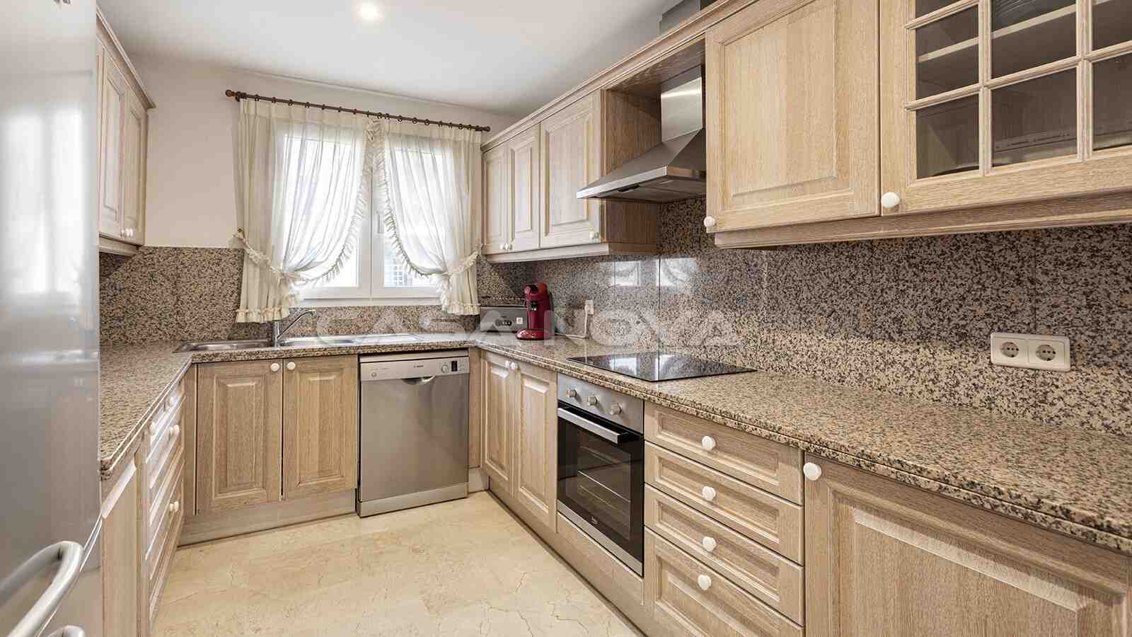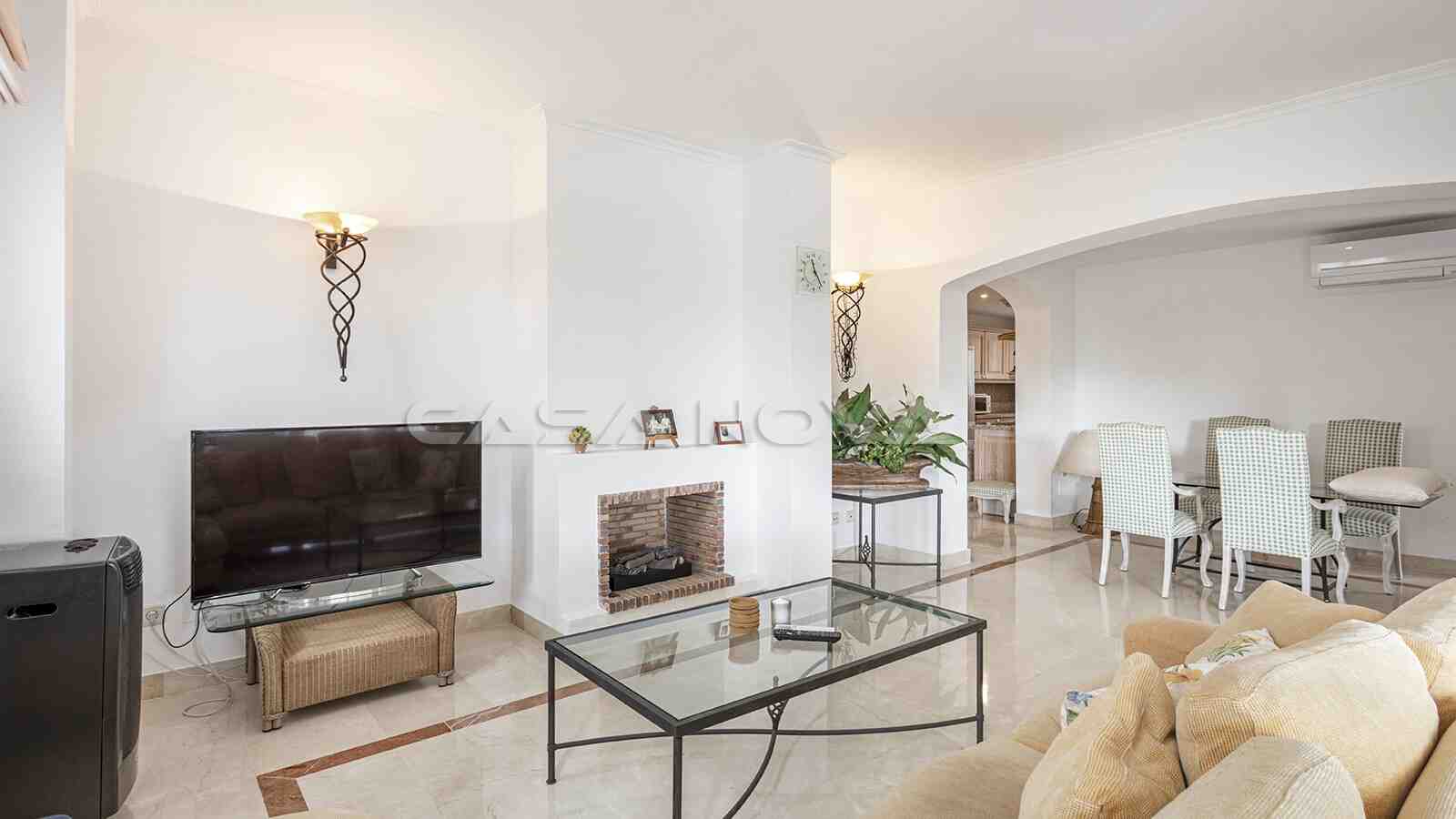 Diese stilvolle Wohnung mit einer großzügigen Wohnfläche von ca. 122 m2 besticht durch ihr offenes und lichtdurchflutetes Raumkonzept. Der weitläufige Salon mit Kamin und integriertem Essbereich schafft eine einladende Atmosphäre und öffnet sich direkt zur sonnigen Terrasse – ein idealer Ort für entspannte Stunden im Freien. Die geräumige Einbauküche ist mit neuen Elektrogeräten vollständig ausgestattet und wird durch einen angrenzenden Hauswirtschaftsraum ergänzt, der zusätzlichen Komfort im Alltag bietet. Zwei gut geschnittene Schlafzimmer sowie zwei Badezimmer (eines davon en suite) sorgen für ein angenehmes Wohngefühl auf hohem Niveau. Die Wohnung verfügt über zahlreiche Ausstattungsmerkmale, die das Gesamtbild harmonisch abrunden. Eine Klimaanlage, die sowohl im Sommer als auch im Winter für ein angenehmes Raumklima sorgt, doppelverglaste Fenster mit Blendläden, elegante Marmorböden sowie praktische Einbauschränke unterstreichen den hohen Wohnkomfort. Zudem stehen SAT-TV, Telefon- und Glasfaseranschluss, eine Gegensprechanlage sowie ein Aufzug zur Verfügung. Die mediterran angelegte Wohnanlage präsentiert sich in einem sehr gepflegten Zustand und wird von einem schönen Gemeinschaftsgarten mit Palmen und üppiger Bepflanzung umgeben. Zwei großzügige Pools und weitläufige Terrassenbereiche laden an heißen Sommertagen zum Sonnenbaden, Schwimmen und Entspannen ein. Abgerundet wird dieses attraktive Immobilienangebot durch einen im Preis enthaltenen PKW-Stellplatz, der zusätzlichen Komfort und Bequemlichkeit bietet.