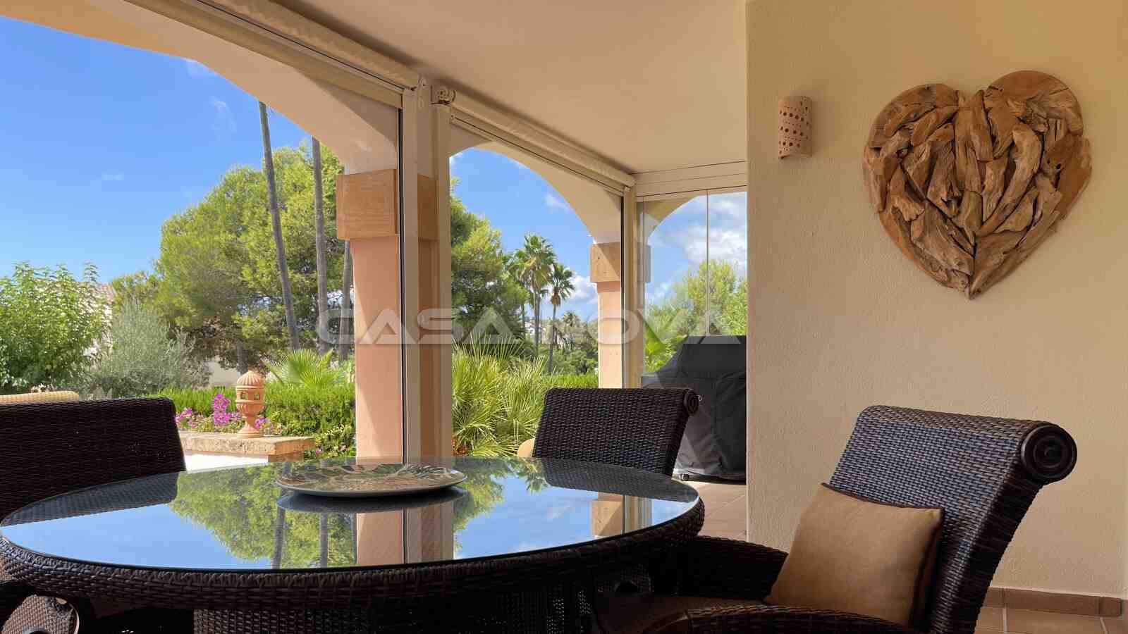 Mallorca Real Estate: This elegant ground floor flat is located in a popular golf residence directly on the Santa Ponsa golf course in the south-west of Mallorca. The property has been decorated with great attention to detail and extensively renovated.