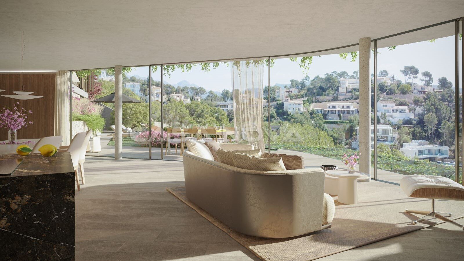 A new building characterised by a combination of organic and modern architecture has been constructed in the immediate vicinity of the harbour. It comprises nine luxurious residential units. The apartment with sea views on the third floor has been built with the finest materials and offers a living space of approximately 297 m2. The bright, open-plan living/dining room has large, floor-to-ceiling windows and provides access to an additional 160 m2 terrace with a garden and an infinity pool, which is ideal for enjoying the diverse sunsets. The kitchen is fully equipped with electrical appliances from renowned brands such as Miele, Gaggenau and Bora. Here, you can prepare delicious meals with your family. The property has 2 beautiful bedrooms with fantastic sea views, fitted wardrobes and en-suite bathrooms. It also has its own gym, guest WC, wellness area with sauna, cinema room, storage room and utility room. Additional features include a private gym, guest bathroom, wellness area with sauna, soundproofed and custom-built home theater, storage rooms, and utility rooms. Luxury features include underfloor heating via heat pump, air conditioning, triple-glazed “Cortizo” aluminum windows with shutters, elegant natural stone and parquet flooring, “Occhio” ceiling lighting, a smart home control system, water filtration system, osmosis system, alarm system, video surveillance, intercom system, dressing room, summer kitchen with barbecue, automatic irrigation, double garage with electric door, driveway, and charging station for electric vehicles.