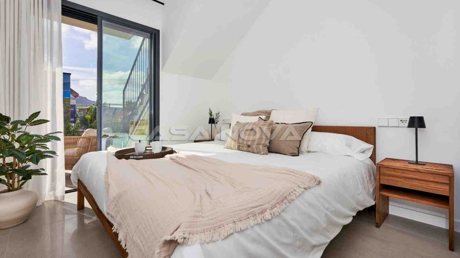 This stylish apartment combines sophisticated architecture with state-of-the-art home technology and a particularly inviting living atmosphere. Generous room layouts, high-quality furnishings and a well thought-out layout ensure a living experience in a class of its own, with three light-flooded, spacious bedrooms and two modern bathrooms at the heart of the property. The master bedroom has an elegant en-suite bathroom that offers privacy and comfort. Air conditioning (hot/cold) and electric underfloor heating in the bathrooms ensure a pleasant indoor climate all year round. The open-plan designer kitchen impresses with its clean lines and modern style. Equipped with high-quality Siemens electrical appliances, it meets the highest standards - ideal for anyone who loves to cook and enjoy themselves. The well thought-out outdoor area offers a variety of opportunities for relaxation: a well-tended private garden with automatic irrigation, a spacious communal garden and a stylish pool area with outdoor shower and lighting create a relaxed, feel-good atmosphere outdoors.A private parking space, secured by an electric access gate, is also included. An already installed charging station for electric vehicles enables convenient and future-oriented parking directly at the house.