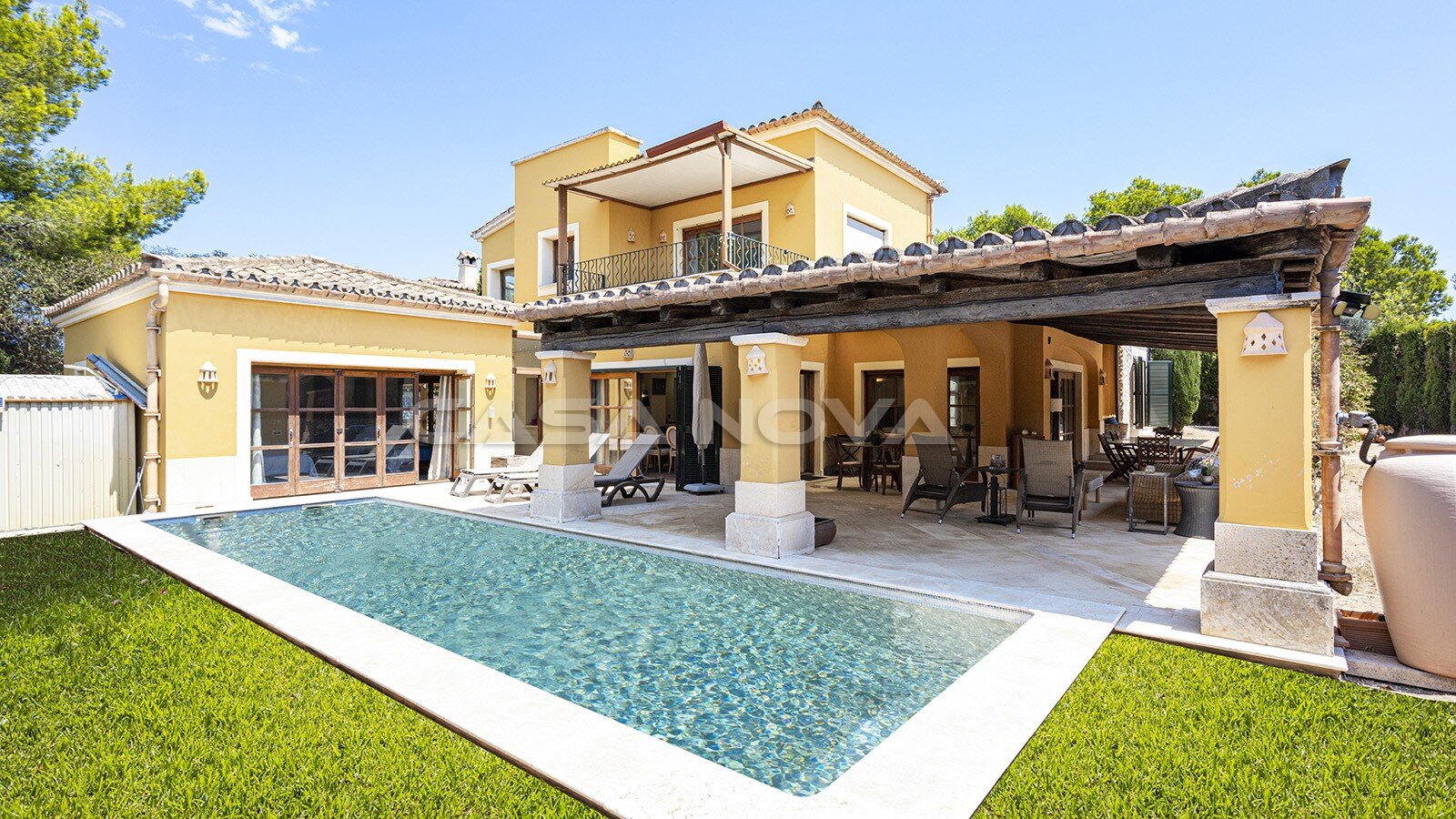 Located on a flat plot, this villa in Nova Santa Ponsa offers a comfortable and Mediterranean living environment.