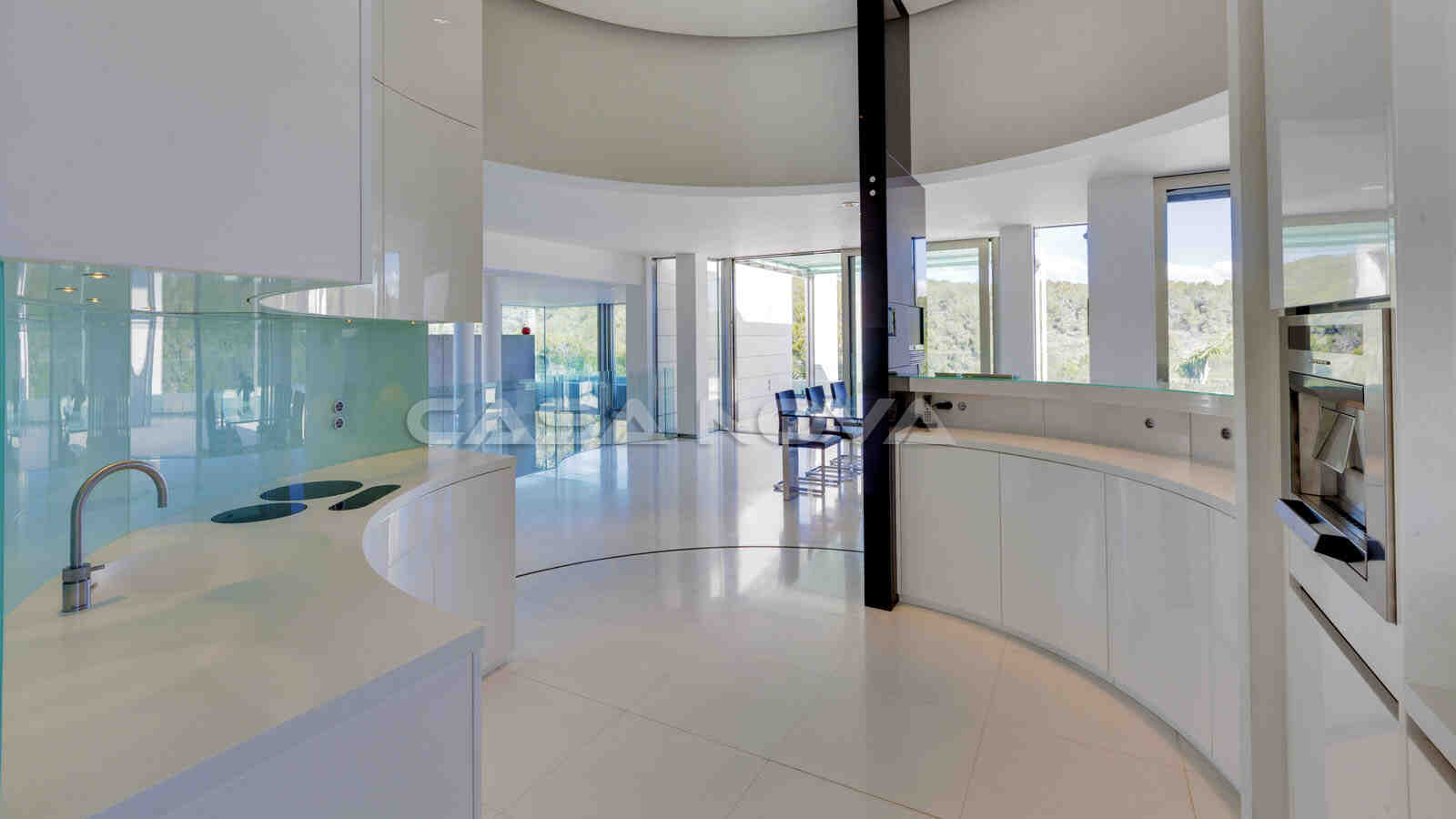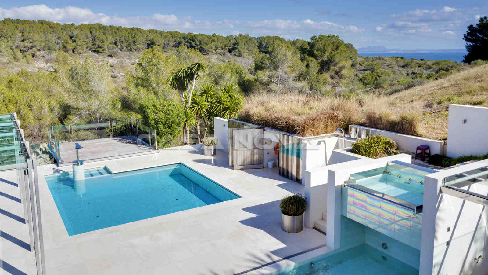 In the immediate area there are several golf courses and several marinas such as the new marina of Port Adriano, which was designed by the famous French designer Philippe Starck, it is a meeting place with many restaurants, bars, like the famous "Zanzibar" of Sylt, shops with famous brands etc. Here you can practice all water sports or you can enjoy the sandy beach with its crystal clear water. Two plots next to the house are optional available.