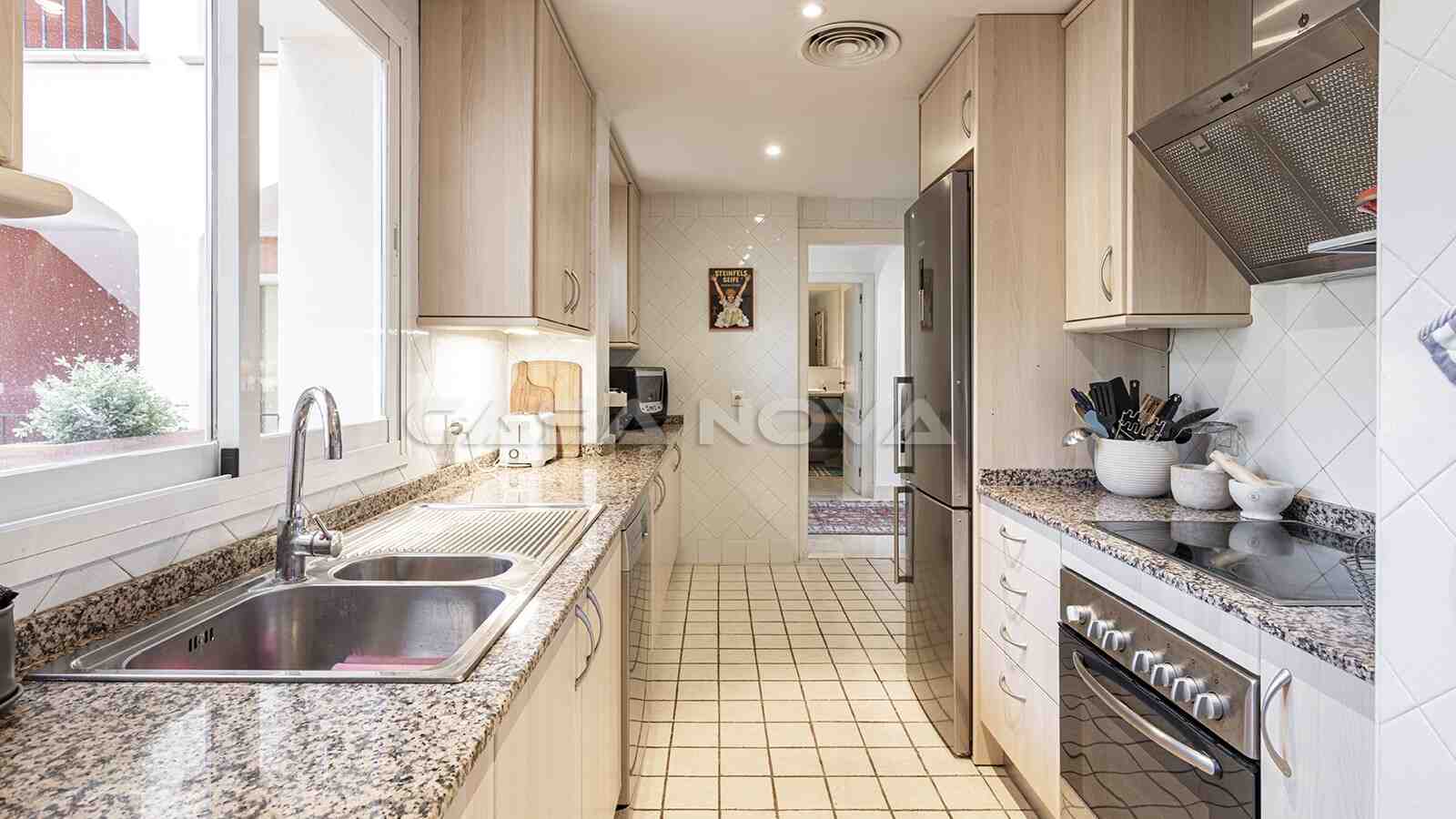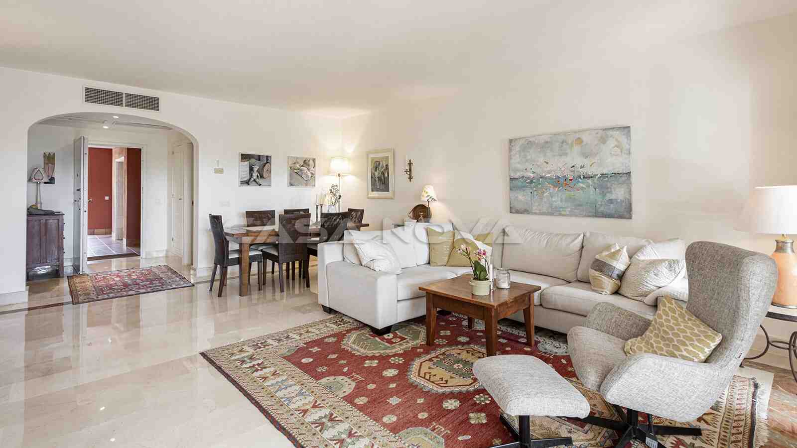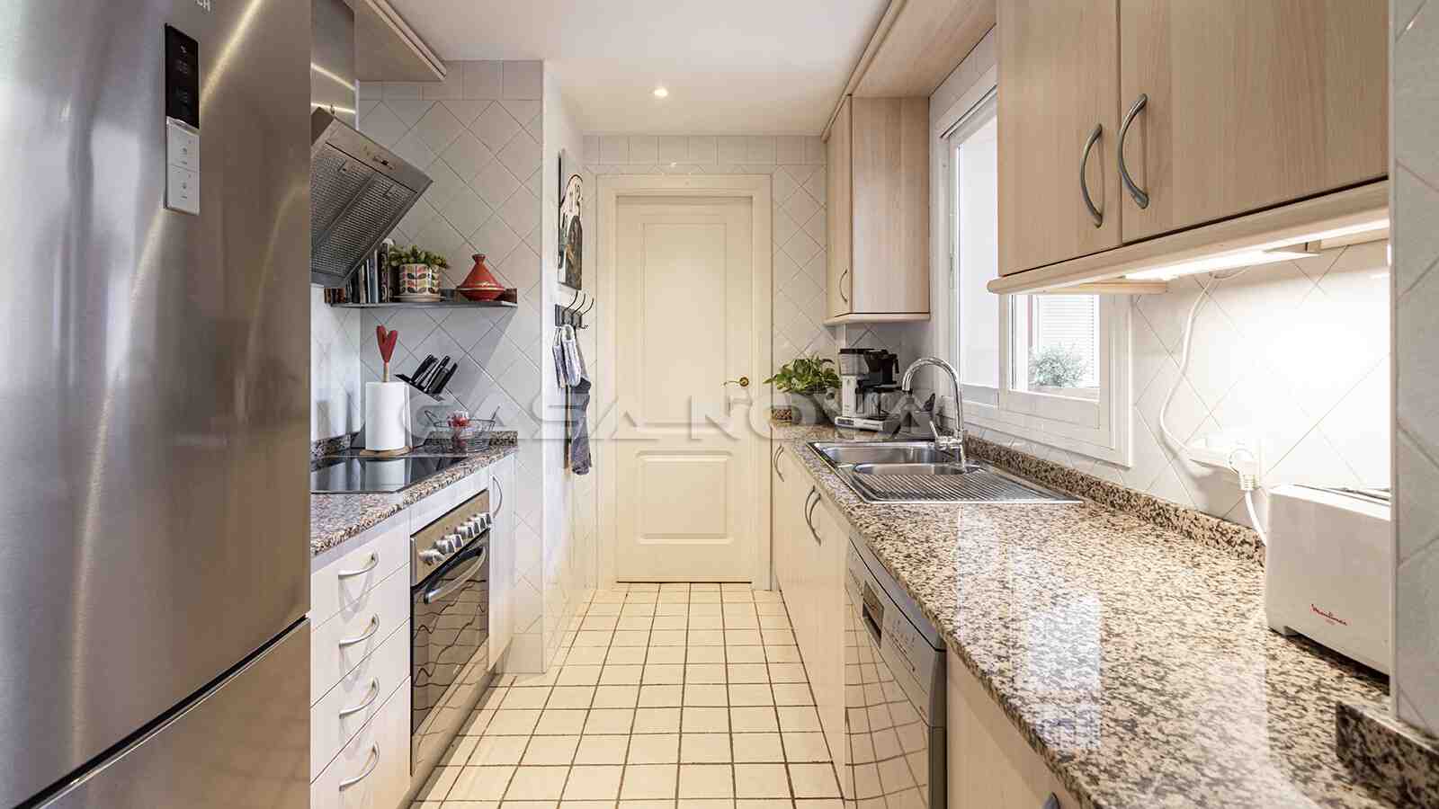El bonito apartamento, de unos 165 m², cuenta con una terraza cubierta de unos 40 m² orientada al sur. Está dividido en un salón-comedor luminoso, una cocina equipada con lavadero contiguo, dos dormitorios con baños en suite, un aseo de invitados y un trastero en el sótano. Ambos dormitorios tienen acceso a la terraza con vistas al jardín y a la piscina. Otras características importantes son: aire acondicionado, calentador de agua, ventanas de aluminio con doble acristalamiento y persianas, armarios empotrados que optimizan el espacio de almacenamiento, suelos de mármol, conexión telefónica, televisión por satélite, ascensor en el complejo y un sistema de ósmosis y filtrado. El jardín comunitario cuenta con dos piscinas rodeadas de terrazas para tomar el sol, una zona de fitness y una piscina cubierta climatizada de 25 metros que se puede utilizar durante todo el año. El complejo cuenta con seguridad las 24 horas y está junto a una zona forestal protegida, lo que garantiza privacidad y tranquilidad, un lugar ideal para pasear a los perros. Una plaza de aparcamiento subterráneo con puerta eléctrica completa la oferta inmobiliaria.