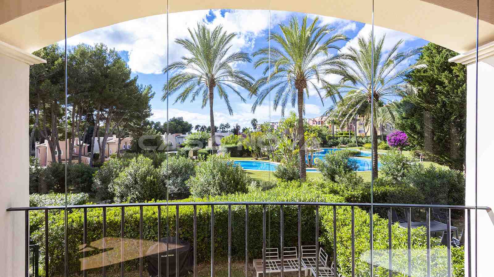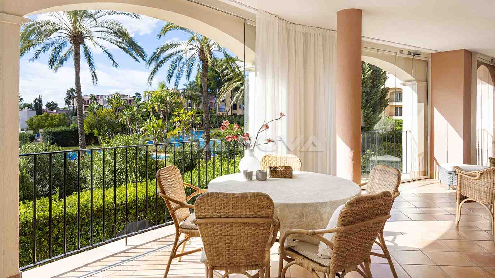 Inmobiliaria Mallorca: Este elegante apartamento está ubicado en una conocida urbanización de golf situada junto al campo de golf de Santa Ponsa, en el suroeste de Mallorca.