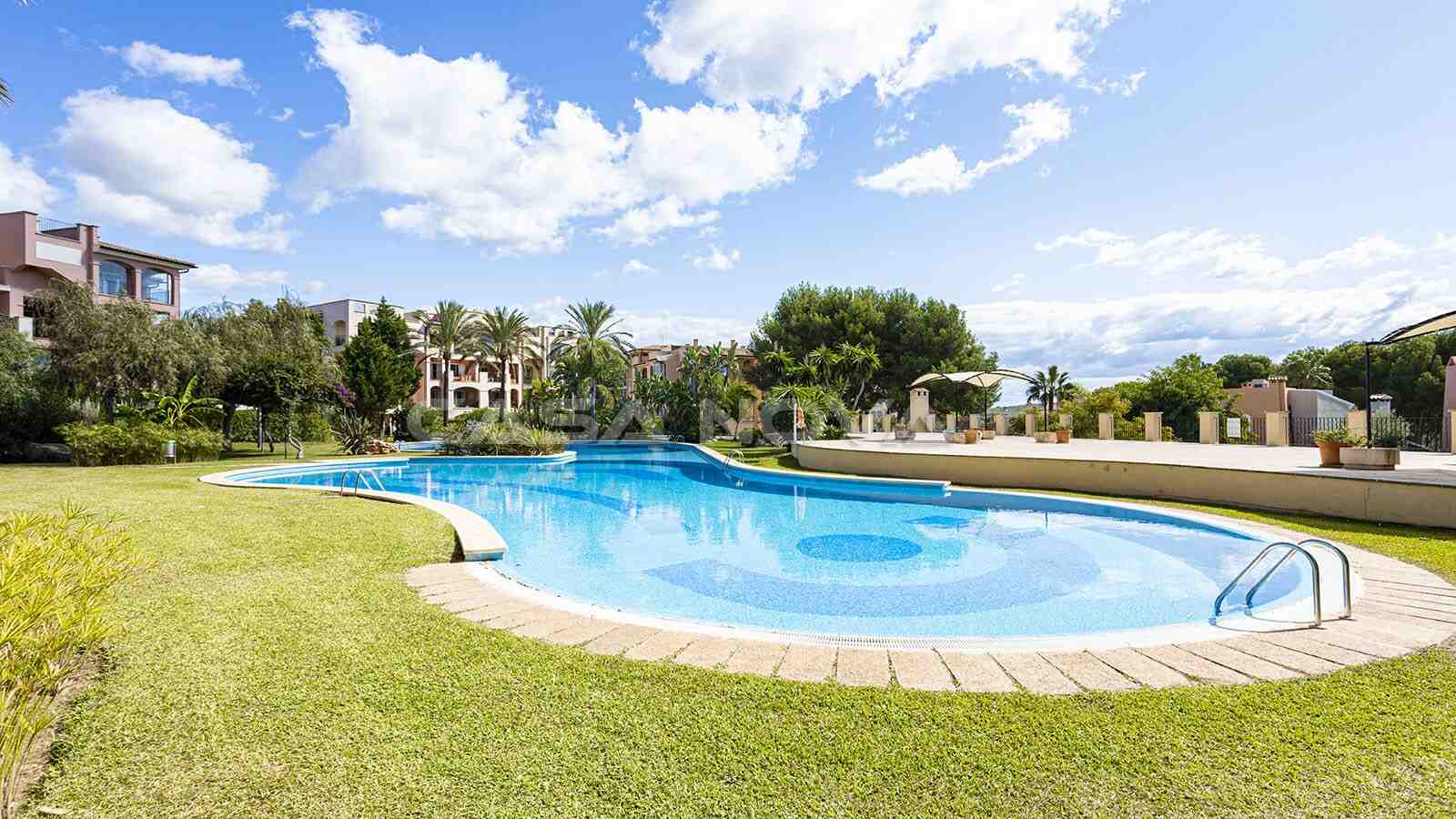Inmobiliaria Mallorca: Este luminoso apartamento se encuentra en una exclusiva urbanización junto al campo de golf de Nova Santa Ponsa, en el suroeste de Mallorca.