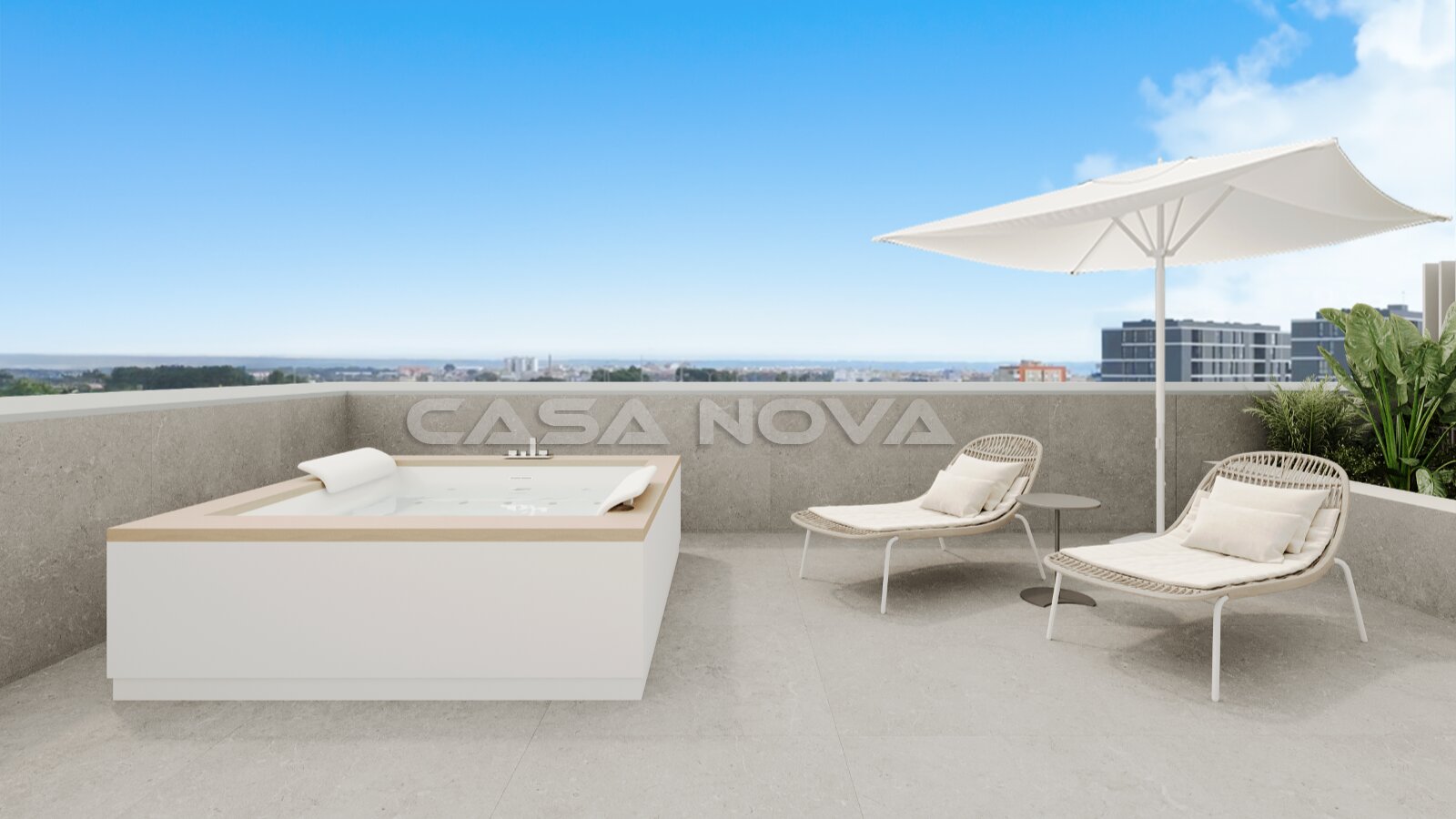Con una superficie habitable de aproximadamente 210 m2 distribuida en dos plantas, en la planta baja encontramos una amplia cocina abierta que da paso a la sala de estar. Esta se abre a grandes ventanas panorámicas eléctricas que refuerzan la relación entre el interior y el exterior, creando un ambiente tipo loft urbano. También hay dos dormitorios, un cuarto de baño y un aseo para invitados. En la planta superior hay otro amplio dormitorio con vestidor y baño privado. Una escalera conduce desde esta planta a la terraza privada de la azotea, desde donde se puede admirar una magnífica vista de la ciudad. Entre otras características adicionales, cuenta con calefacción por suelo radiante, aire acondicionado frío/calor, ventanas de aluminio con doble acristalamiento, persianas eléctricas, ascensor, baldosas de gres porcelánico y parqué de roble, sistema domótico y de bus (domótica controlada por ordenador), sistema de descalcificación por ósmosis, portero automático, energía solar, una plaza de aparcamiento subterráneo con puerta eléctrica y una estación de carga preinstalada para vehículos eléctricos. Las lujosas instalaciones comunitarias incluyen una refrescante zona de piscina con terrazas para tomar el sol, una zona de descanso con cafetería, un simulador de golf, un gimnasio para los amantes del deporte, una zona de bienestar con salas de spa y una sala de cine para los residentes. Gracias a la energía solar, al sistema de tratamiento de agua de lluvia y a los cristales y persianas resistentes a los rayos ultravioleta, se utiliza la energía de forma eficiente. Actualmente, los propietarios pueden elegir entre tres estilos diferentes para el diseño óptimo de su nuevo apartamento: estilo industrial Raw, estilo Aparthotel Adagio y estilo rústico con encanto Artà. Se prevé que esta propiedad de lujo esté terminada en 2027.