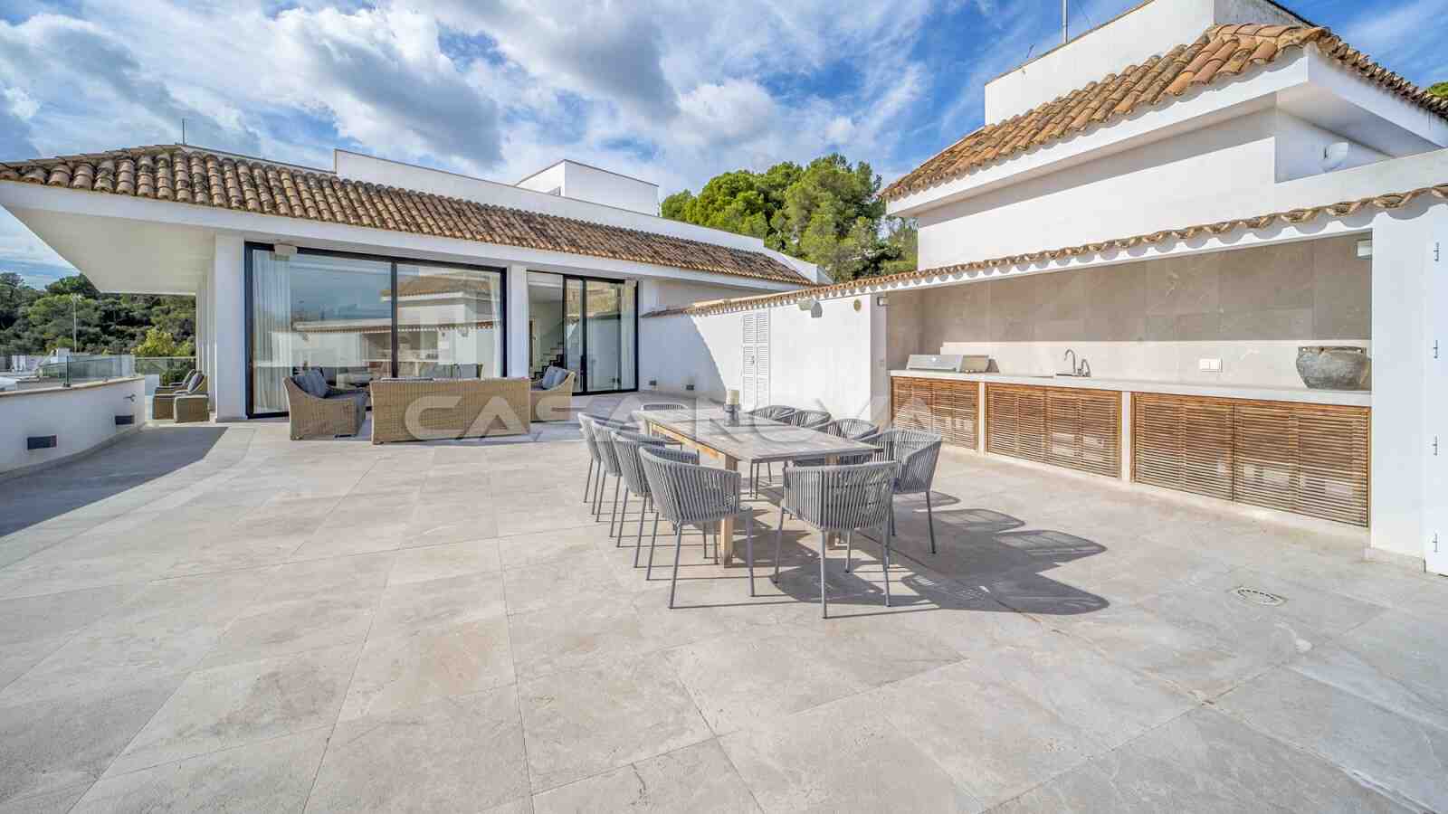 Illetas es una de las zonas residenciales más exclusivas de Mallorca. Este elegante suburbio es muy popular debido a su infraestructura durante todo el año. Restaurantes nacionales e internacionales, elegantes boutiques, así como tiendas para las necesidades diarias se encuentran en las inmediaciones. La propiedad está a sólo unos minutos a pie de la playa de arena fina. En los pueblos de los alrededores hay maravillosos puertos deportivos y magníficos campos de golf. El centro de la capital de la isla, Palma de Mallorca, rica en cultura, se encuentra a 10 minutos en coche. El aeropuerto internacional está a sólo 20 minutos en coche.