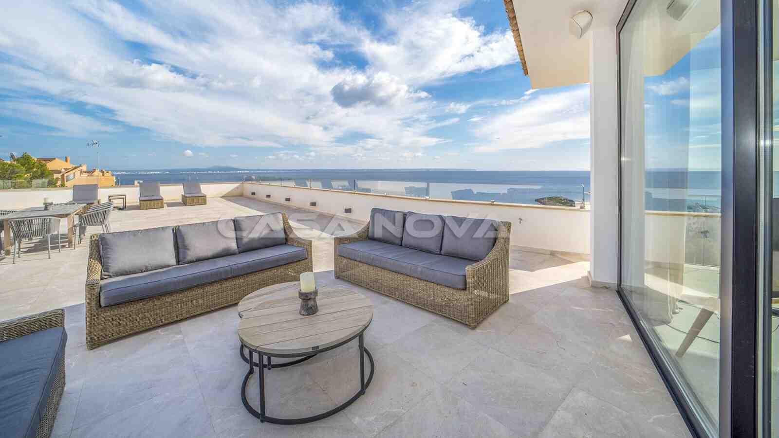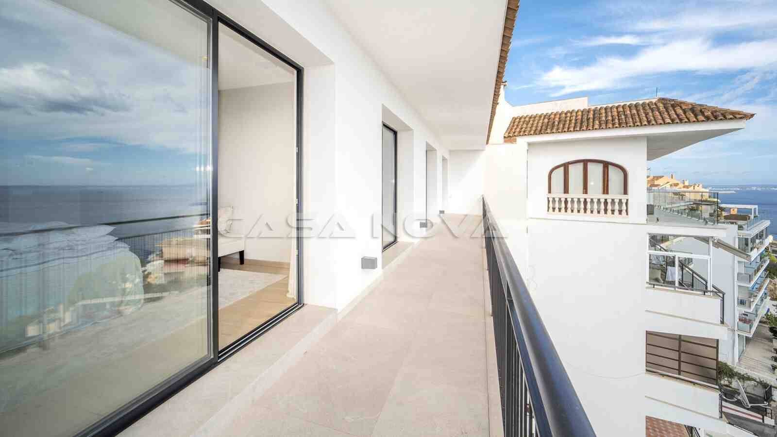 Agente inmobiliario en Mallorca: fantástico ático con vistas panorámicas al mar, situado en primera línea de la playa de Illetas, en el suroeste de Mallorca.