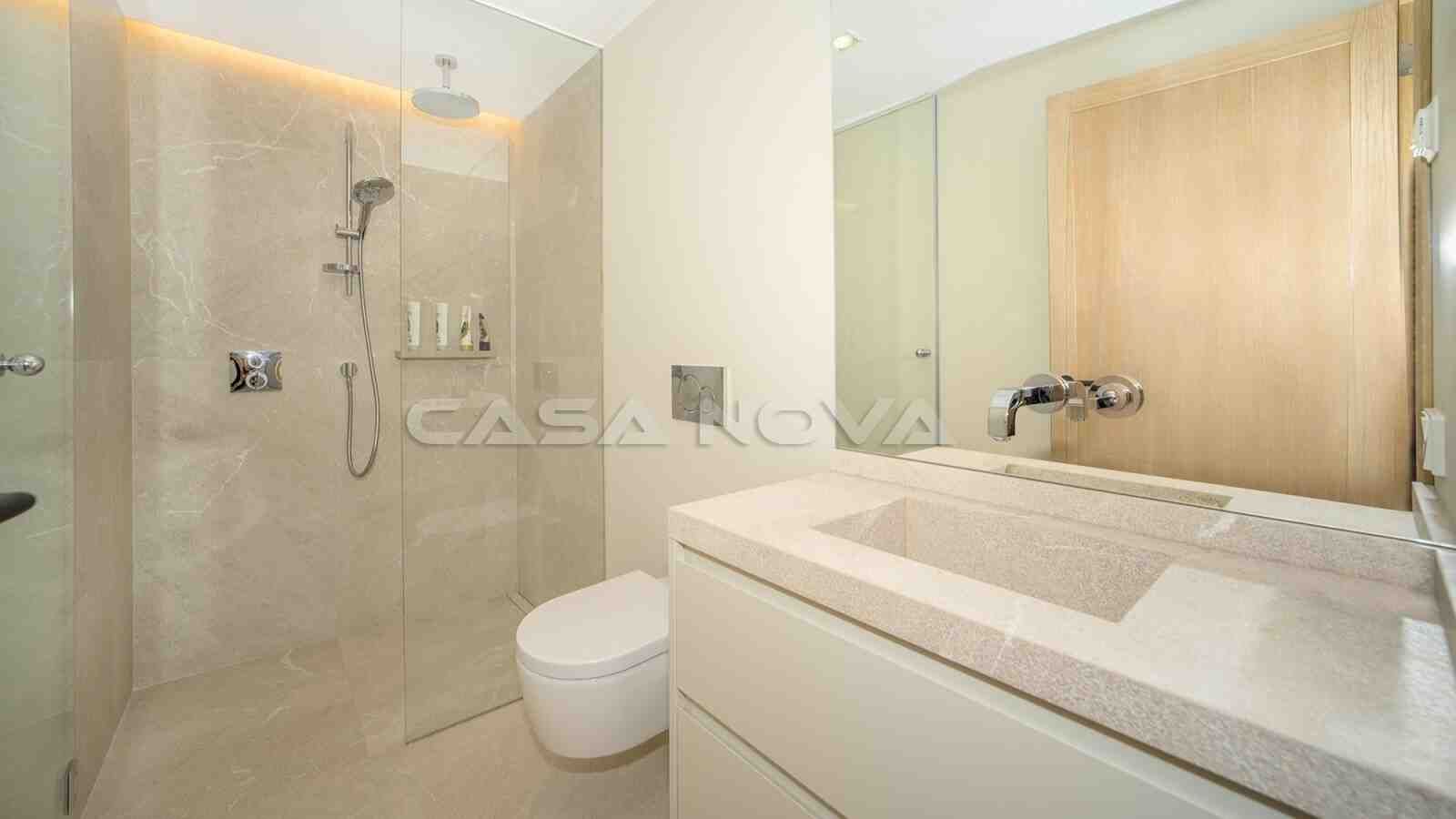 Este moderno y elegante ático fue renovado en 2024 y tiene una superficie construida de aproximadamente 351 m2. A través de la zona de entrada se accede al luminoso salón-comedor con ventanas de cristal que llegan hasta el techo. Desde allí se accede a la terraza con espectaculares vistas al mar. ¡Déjese hechizar por el ambiente relajado del salón chillout! La cocina de verano con zona de barbacoa es ideal para pasar veladas agradables con la familia y los amigos, donde podrá preparar deliciosas comidas. La cocina empotrada, totalmente equipada, cuenta con los mejores electrodomésticos y un lavadero con vinoteca. En esta planta también hay un aseo de invitados y un trastero. A través de un pasillo se accede a los 4 dormitorios con armarios empotrados y 4 baños, 2 de ellos en suite. Los dormitorios están conectados por un balcón común con fantásticas vistas al mar. Lo más destacado es la azotea privada de aproximadamente 165 m2 con una sala separada de uso libre. Se puede acceder a ambas plantas en ascensor o por las escaleras. El equipamiento de la propiedad de lujo incluye: aire acondicionado, calefacción por suelo radiante, suelos de piedra natural y laminados, ventanas de doble acristalamiento, televisión por satélite, portero automático y una plaza de aparcamiento subterráneo con puerta eléctrica. El edificio de este extraordinario ático está situado en una ladera entre dos calles. Desde la calle superior se accede directamente a la propiedad subiendo unos pocos escalones. Desde la calle inferior o desde el aparcamiento subterráneo se utiliza el ascensor, que lleva directamente al ático.