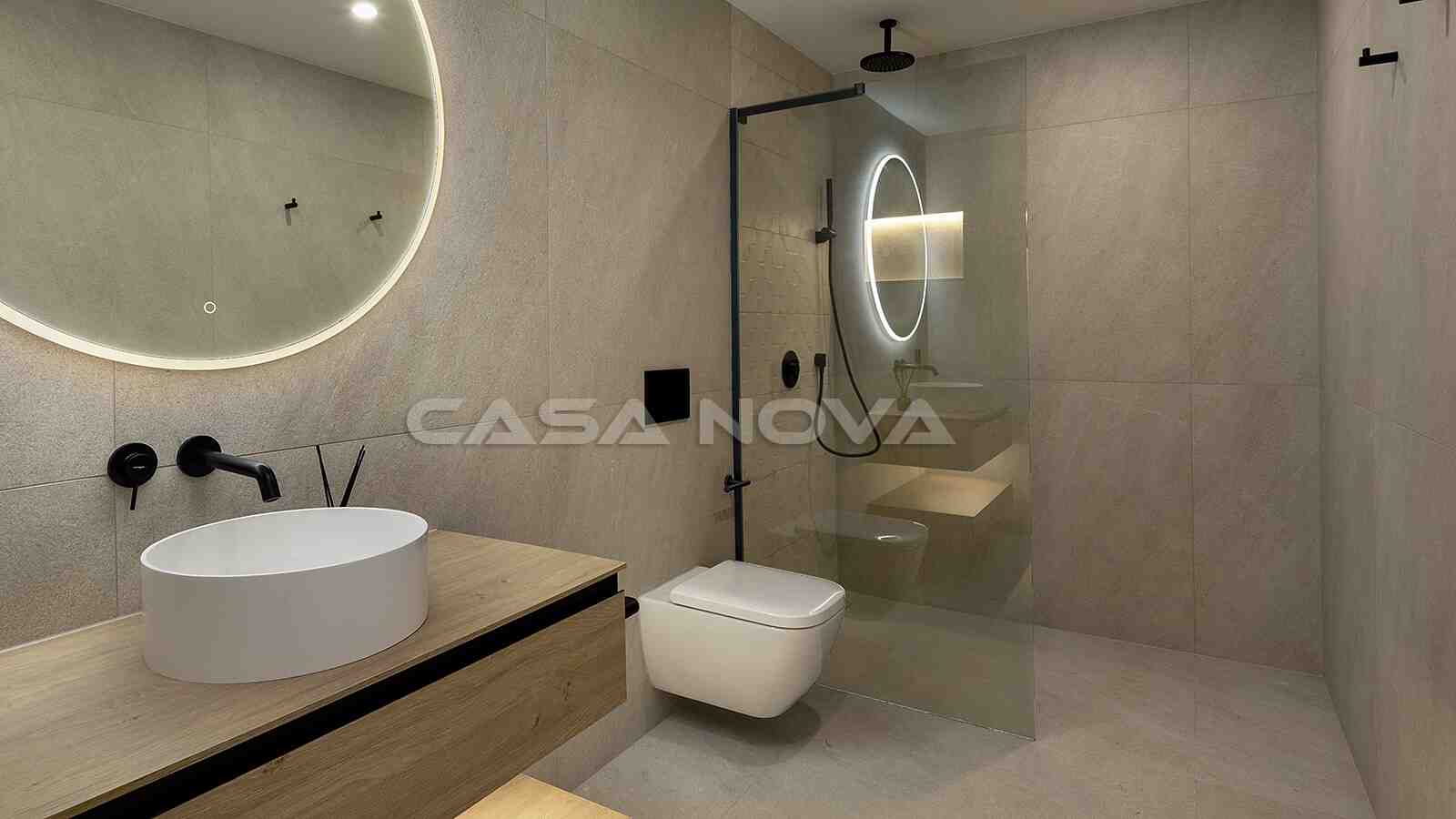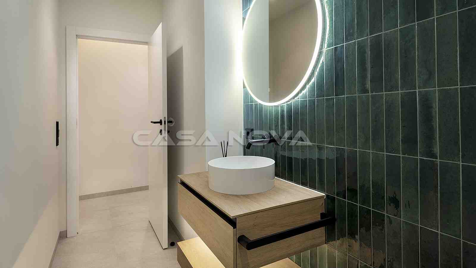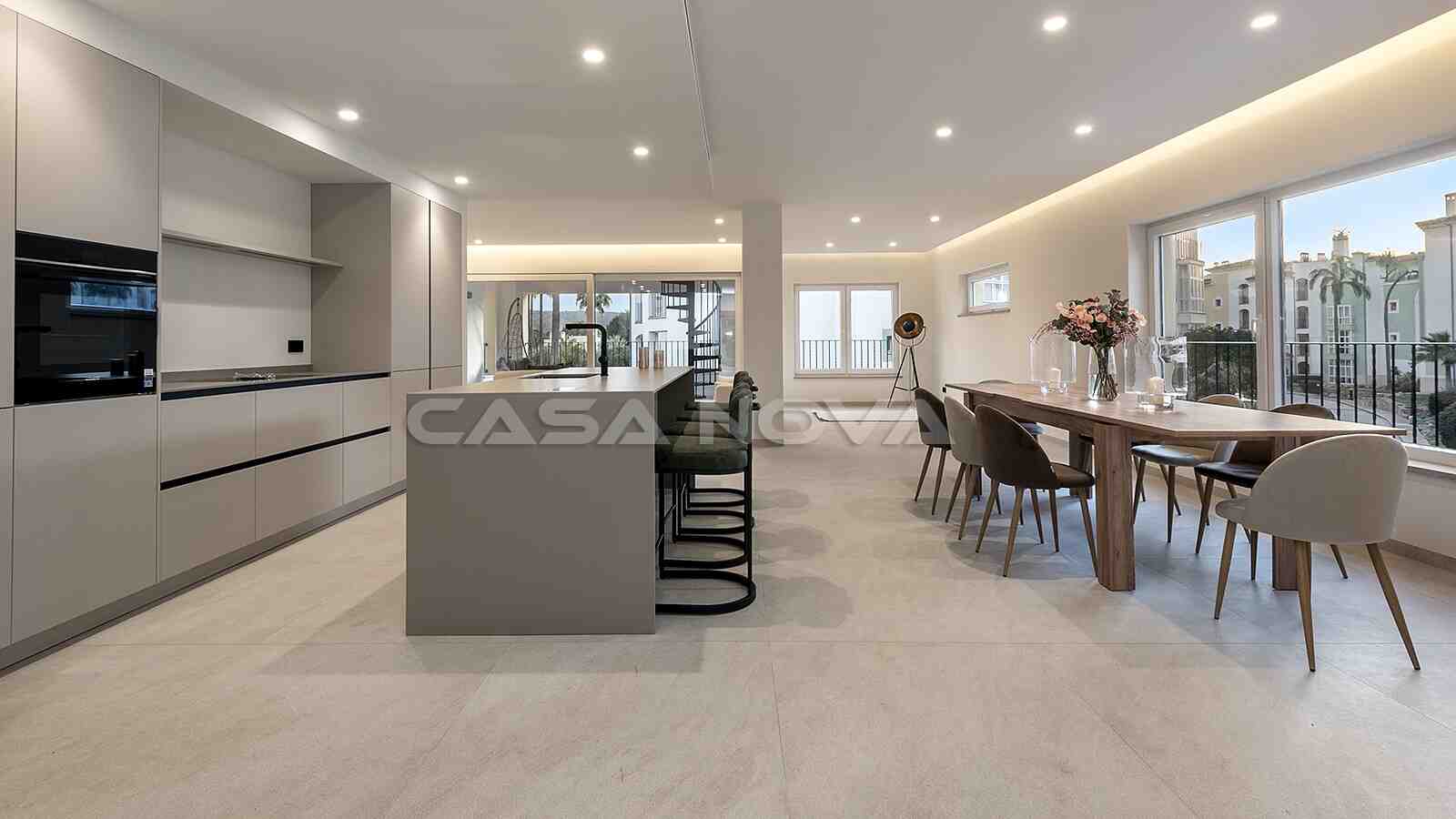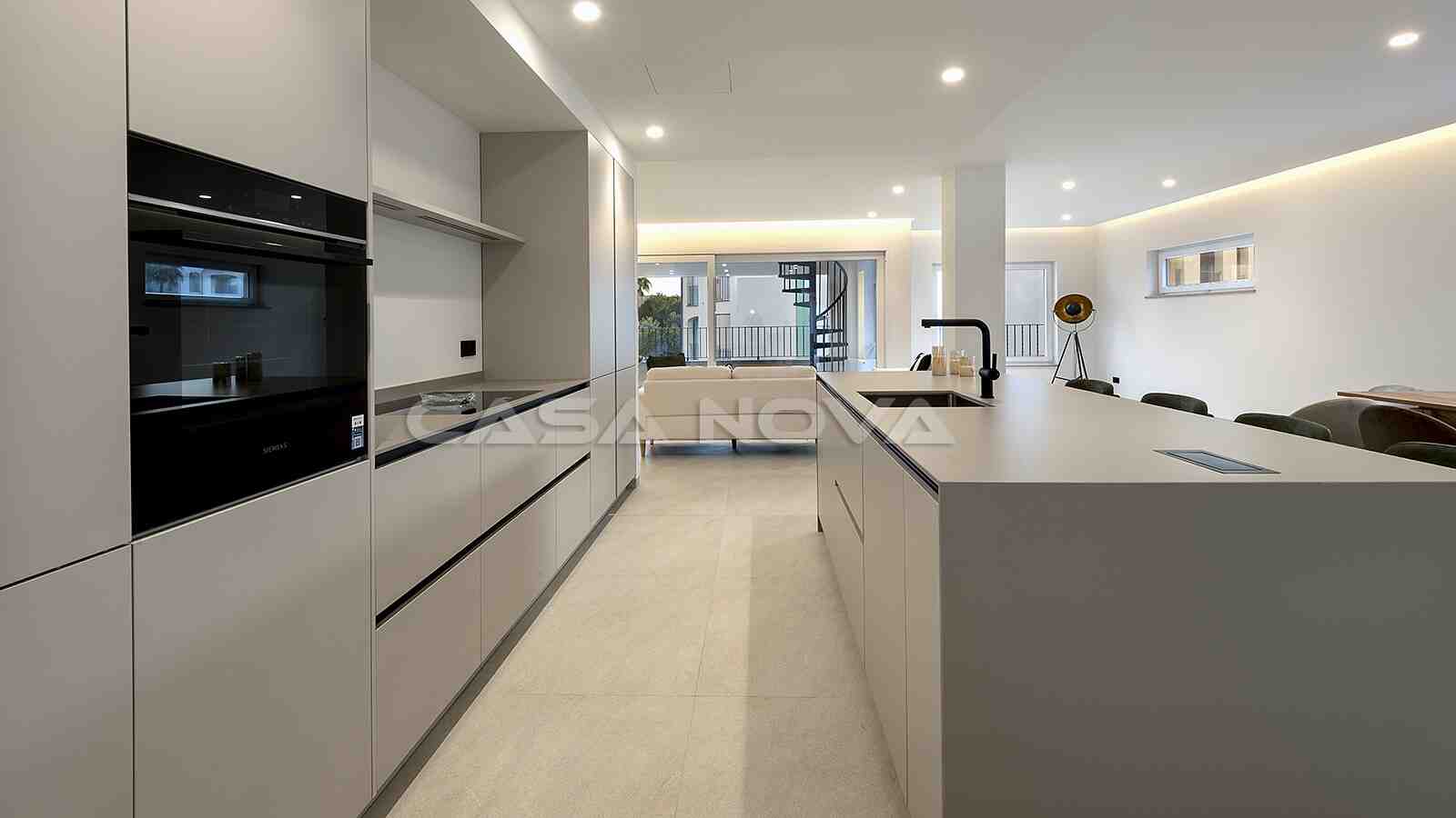 La propiedad se extiende sobre una superficie construida total de 256m2, de los cuales la superficie habitable es de aprox. 200 m2. Con 3 amplios dormitorios y 3 modernos cuartos de baño en suite, la propiedad ofrece un amplio espacio para la familia y los invitados. Los constructores, con amplia experiencia en proyectos inmobiliarios en Alemania, han seleccionado deliberadamente los productos y accesorios de mayor calidad del mercado para garantizar el máximo confort al nuevo propietario. Destacan el aire acondicionado y la calefacción por suelo radiante en toda la casa, los electrodomésticos y materiales de alta calidad y las ventanas que garantizan una gran eficiencia energética. La cocina abierta de diseño impresiona por su estética moderna y está equipada con electrodomésticos de alta calidad de la marca Siemens que cumplen con los más altos estándares y hacen que cocinar las tardes juntos sea un placer. Por último, una amplia zona exterior completa la atractiva oferta, compuesta por una azotea privada de aprox. 40 m2 y una gran piscina comunitaria de agua salada. Esta propiedad es adecuada para aquellos que buscan un alojamiento confortable cerca de las playas de Santa Ponsa y Port Adriano y de los campos de golf, así como para inversores que buscan una prometedora oportunidad de inversión.