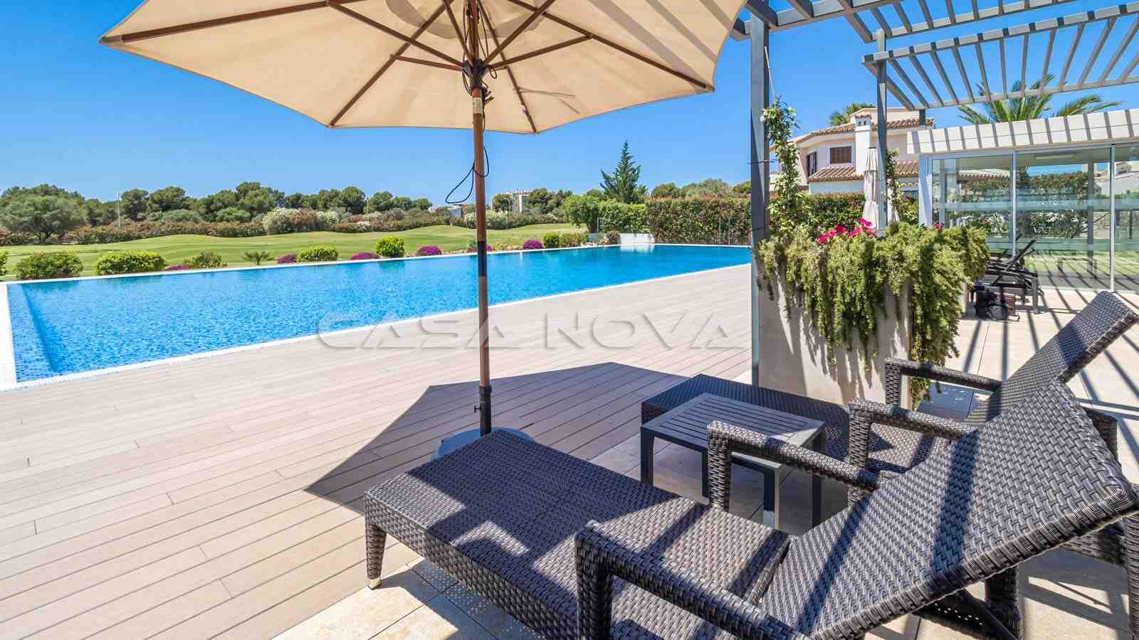 Agente inmobiliario Mallorca: Casa adosada mediterránea en una tranquila zona residencial de Santa Ponsa, en el suroeste de Mallorca, situada directamente junto al campo de golf.