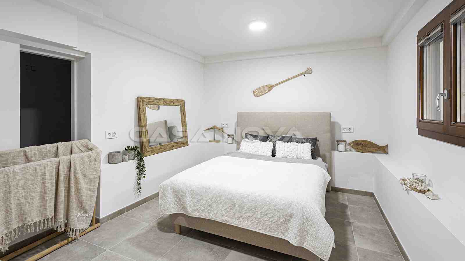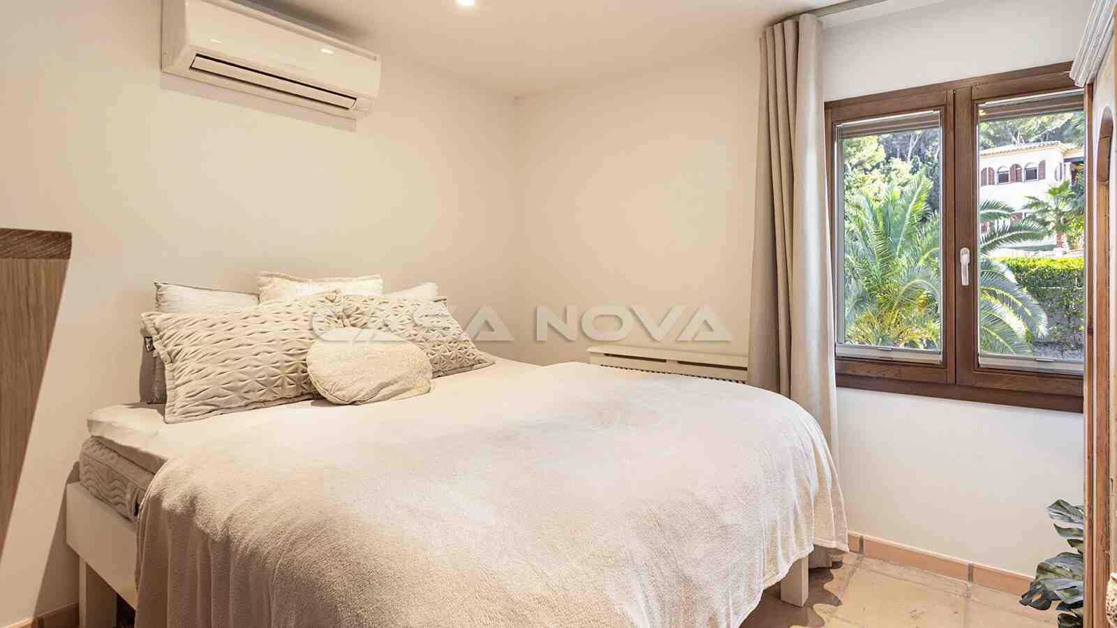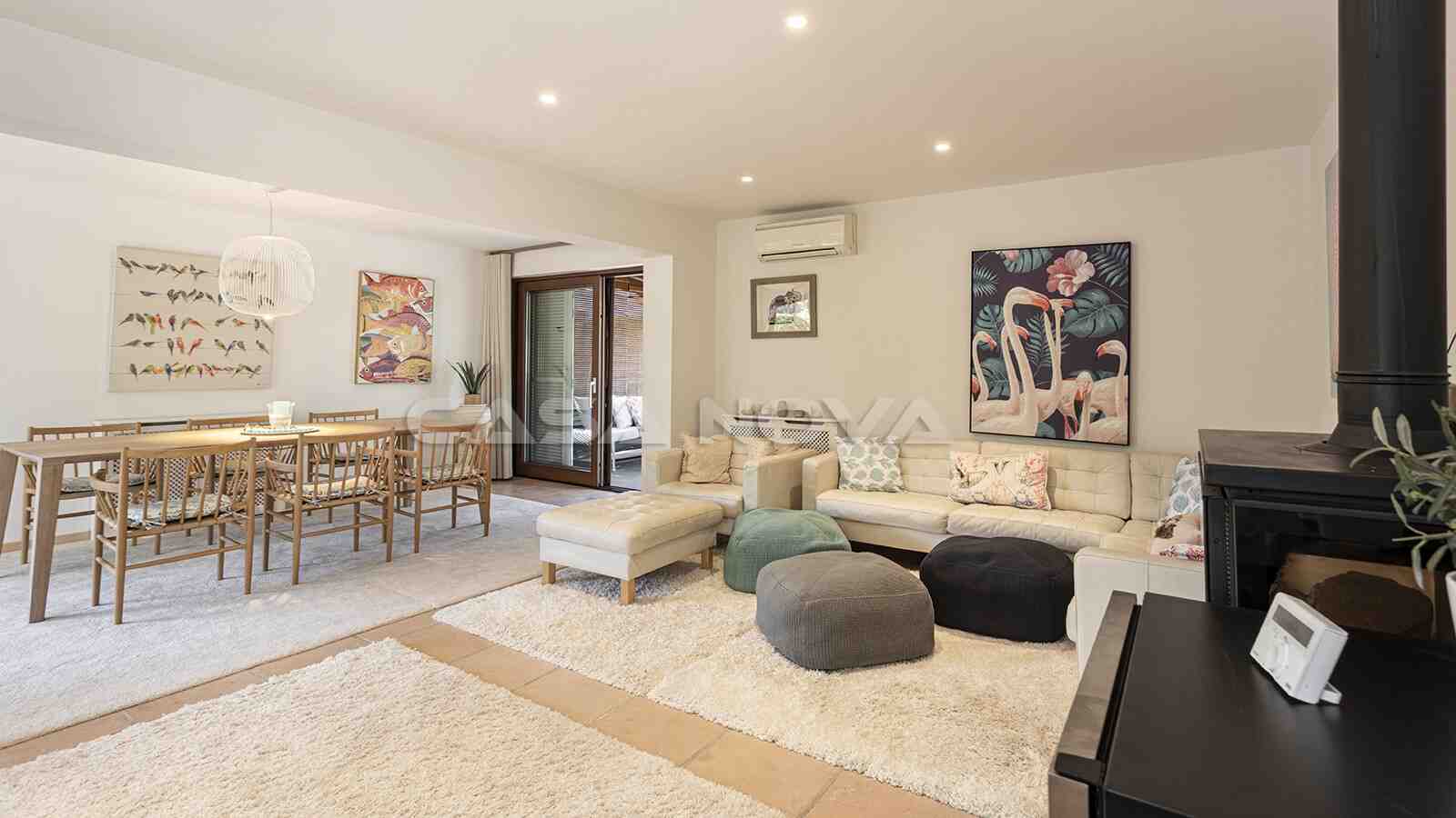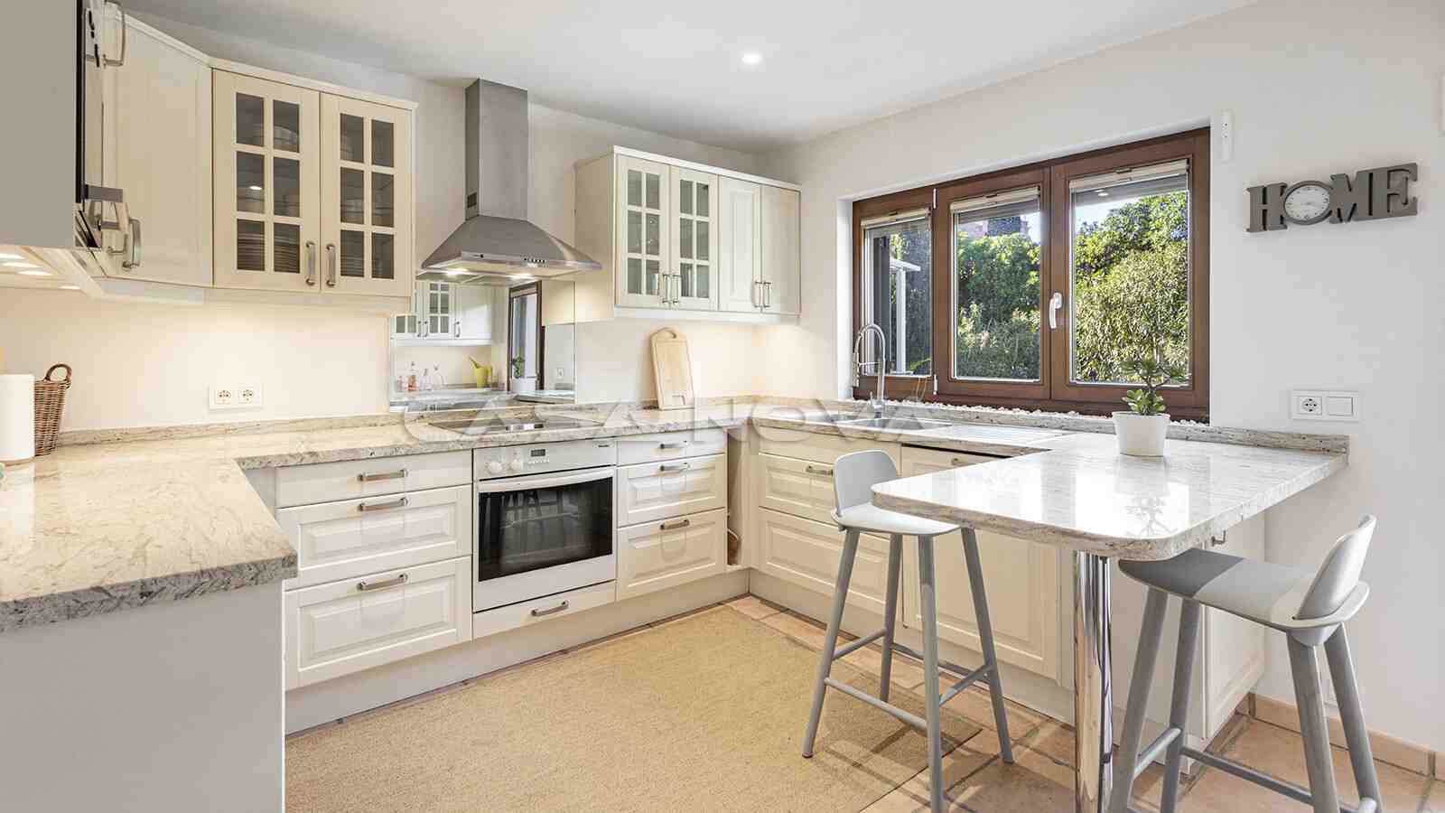 La villa, que fue completamente renovada en 2023, se encuentra en una parcela de aproximadamente 1127 m2. La superficie habitable, de unos 180 m2, se distribuye en 2 plantas. En la planta baja se accede a un precioso salón-comedor diáfano con chimenea. Desde allí se puede disfrutar de las magníficas vistas de las terrazas. La cocina moderna y equipada cuenta con electrodomésticos de alta gama de las marcas Miele y Siemens. En total, la casa principal cuenta con 3 amplios dormitorios y 2 baños, uno de ellos en suite. En el sótano hay una entrada independiente con un dormitorio para invitados y un baño privado. La villa, rodeada de un cuidado jardín, cuenta con una piscina de agua salada y una gran variedad de árboles y plantas mediterráneas. Disfrute de momentos de relax con sus seres queridos y déjese seducir por el ambiente relajado del salón chillout. Además, hay un cuarto de servicio y un trastero. La villa está equipada con aire acondicionado frío/calor, agua caliente mediante calentador de gasóleo, energía solar para un acumulador de electricidad, calefacción central de gasóleo, suelos de terracota, ventanas de madera con doble acristalamiento y marcos de roble, sistema de alarma con vídeo Scharpf, televisión por satélite, videoportero, sistema de riego automático, cocina de verano, una plaza de garaje con puerta eléctrica y dos plazas de aparcamiento, una de ellas cubierta con puerta de acceso eléctrica.