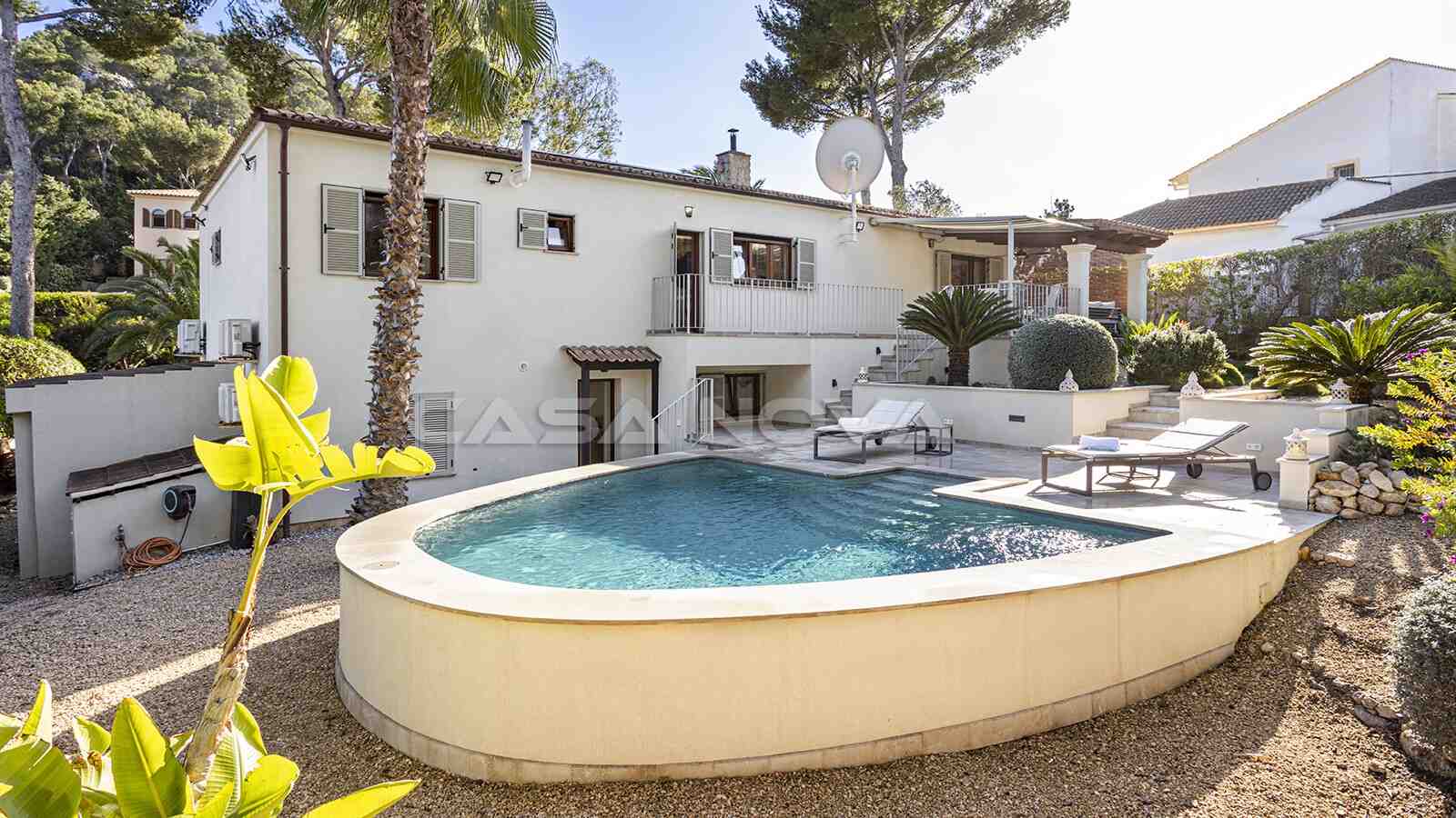 Inmobiliaria Mallorca: esta espaciosa villa, que cuenta con un dormitorio independiente para invitados y un jardín privado con piscina, se encuentra en la privilegiada zona de Santa Ponsa, en el suroeste de Mallorca.