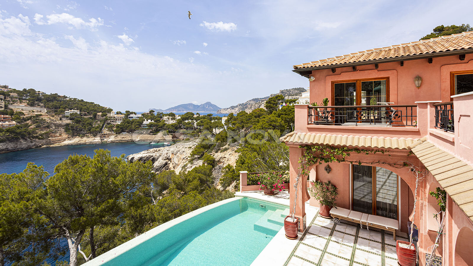Agente inmobiliario Mallorca: Esta villa de ensueño con espectaculares vistas al mar se encuentra en 1ª línea de mar y tiene acceso directo al mar. Se encuentra en la bahía de Cala Marmacen, cerca de Puerto Andratx, en el suroeste de la isla de ensueño de Mallorca.
